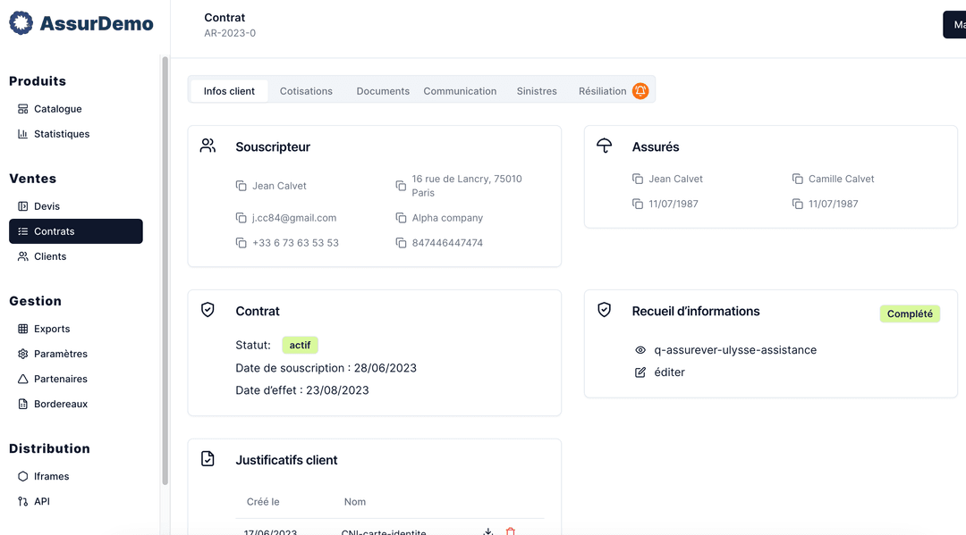 Définissez une multiplicité de produits d'assurance rapidement et sans complexité : recueils d'informations, tarificateurs, garanties et franchises, documents templates contractuels, ... Une documentation API propre à vos produits est générée et directement utilisable pour vos souscriptions.