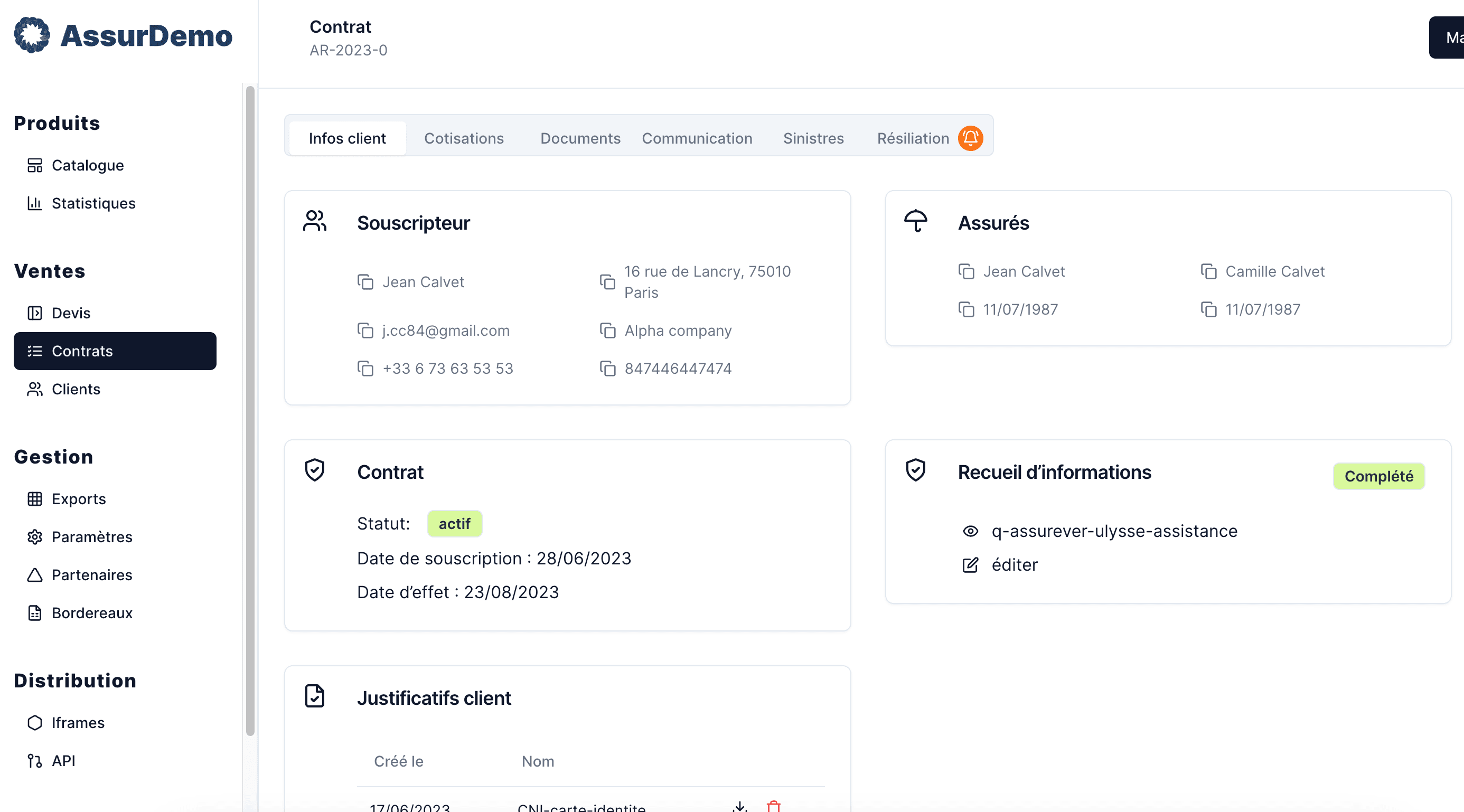 Consultez les clients, les devis et les contrats au sein d'une même interface. Réalisez les tâches liées à la gestion au quotidien des contrats d'assurance en minimisant les actions manuelles.